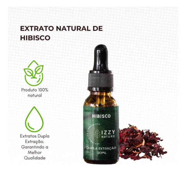 Por que Escolher o Extrato de Hibisco da Izzy Nature? Potência Máxima: Nosso extrato líquido de Hibisco oferece a mais alta concentração, garantindo que você receba todos os benefícios em cada gota. Apoio ao Sistema Imunológico: Estudos mostram que o Hibisco pode fortalecer o sistema imunológico, ajudando a combater infecções e doenças. Sinta a diferença na sua saúde e bem-estar geral. Redução do Estresse: Com propriedades relaxantes, o Hibisco ajuda a reduzir o estresse e a ansiedade, promovendo um estado de calma e equilíbrio. Saúde Cardiovascular: Rico em antocianinas, nosso extrato de Hibisco apoia a saúde do coração, ajudando a regular a pressão arterial e a reduzir o colesterol. Propriedades Antioxidantes: O Hibisco é conhecido por suas propriedades antioxidantes, que ajudam a combater os radicais livres e a proteger as células do corpo. Conveniência sem Igual: Fácil de incorporar na sua rotina diária, nossa tintura permite uma dosagem precisa e rápida, sem complicações. Como Usar? Simplesmente adicione 15 a 20 gotas à sua bebida favorita duas vezes ao dia e sinta a transformação em seu bem-estar. Agite antes de usar. Armazenamento: Mantenha em local fresco, seco e ao abrigo da luz solar direta. Agite antes de usar. Manter fora do alcance de crianças. Ingredientes: Álcool de cereais, água destilada, flores de hibisco (Hibiscus sabdariffa). Validade: 12 meses. Isento de Registro conforme art. 3 da RDC 21/2014 Escolha Izzy Nature para uma Vida Melhor: Nossos produtos passam por testes rigorosos para assegurar que você receba apenas o melhor. Com Izzy Nature, você escolhe um estilo de vida focado na saúde e na qualidade. Atenção: A saúde é primordial. Recomendamos que consulte um profissional antes de adicionar qualquer suplemento à sua dieta. Lembrando que este produto não é um medicamento. Pronto para revolucionar sua saúde? Adicione o Extrato Tintura de Hibisco em Gotas ao seu carrinho hoje mesmo e comece a jornada para o bem-estar! Aviso: Este produto não se destina a diagnosticar, tratar, curar ou prevenir qualquer doença. Sem garantia