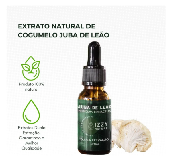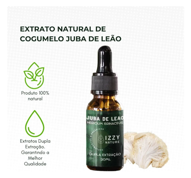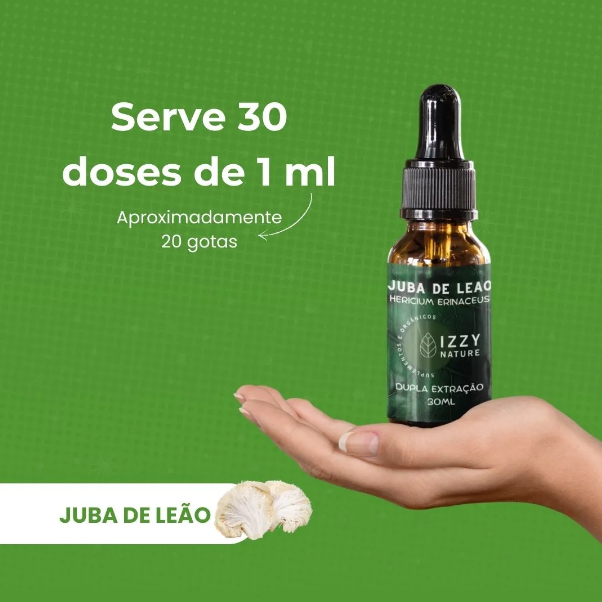 Aqui está a descrição do Extrato de Juba de Leão com a marca atualizada para Izzy Nature: Potencialize sua saúde com nosso Extrato de Juba de Leão de alta concentração. Apoia o sistema imunológico, melhora a memória e o foco, e promove a saúde neurológica. Fácil de usar, basta adicionar 15 a 20 gotas à sua bebida favorita duas vezes ao dia. Armazene em local fresco e seco. Ideal para quem busca um estilo de vida mais saudável. Aviso: Este produto não se destina a diagnosticar, tratar, curar ou prevenir qualquer doença. Por que Escolher o Extrato de Juba de Leão da Izzy Nature? Potência Máxima: Nosso extrato líquido de Juba de Leão oferece a mais alta concentração, garantindo que você receba todos os benefícios em cada gota. Apoio ao Sistema Imunológico: Estudos mostram que o Juba de Leão pode fortalecer o sistema imunológico, ajudando a combater infecções e doenças. Sinta a diferença na sua saúde e bem-estar geral. Melhora Cognitiva: Com propriedades nootrópicas, o Juba de Leão ajuda a melhorar a memória, o foco e a clareza mental. Experimente um aumento na sua capacidade cognitiva e desempenho mental. Saúde Neurológica: Rico em hericenonas e erinacinas, nosso extrato de Juba de Leão apoia a saúde do cérebro, ajudando a regenerar células nervosas e a prevenir doenças neurodegenerativas como o Alzheimer. Propriedades Antioxidantes: O Juba de Leão é conhecido por suas propriedades antioxidantes, que ajudam a combater os radicais livres e a proteger as células do corpo. Conveniência sem Igual: Fácil de incorporar na sua rotina diária, nossa tintura permite uma dosagem precisa e rápida, sem complicações. Como Usar? Simplesmente adicione 15 a 20 gotas à sua bebida favorita duas vezes ao dia e sinta a transformação em seu bem-estar. Agite antes de usar. Armazenamento: Mantenha em local fresco, seco e ao abrigo da luz solar direta. Agite antes de usar. Manter fora do alcance de crianças. Ingredientes: Álcool de cereais, água destilada, cogumelo Juba de Leão (Hericium erinaceus). Validade: 3 meses. Isento de Registro conforme art. 3 da RDC 21/2014 Escolha Izzy Nature para uma Vida Melhor: Nossos produtos passam por testes rigorosos para assegurar que você receba apenas o melhor. Com Izzy Nature, você escolhe um estilo de vida focado na saúde e na qualidade. Atenção: A saúde é primordial. Recomendamos que consulte um profissional antes de adicionar qualquer suplemento à sua dieta. Lembrando que este produto não é um medicamento. Pronto para revolucionar sua saúde? Adicione o Extrato Tintura de Juba de Leão em Gotas ao seu carrinho hoje mesmo e comece a jornada para o bem-estar! Aviso: Este produto não se destina a diagnosticar, tratar, curar ou prevenir qualquer doença. Sem garantia